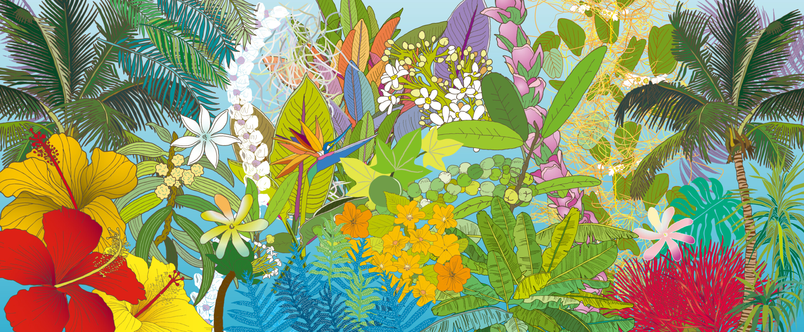 その理由は、パターン供給の不自由さにあると思っています。Y.Yoshidaは、ハワイアンキルトのパターンをデザインする他に、多くのデザインを主な仕事にしているプロのデザイナーです。中でも日本のハワイアン業界の仕事を年間多数手がけています。フラダンスの興業や、コンペティション、ハワイアンショップや、フラハーラウと、ハワイアンキルト。これらのWebsiteや広告宣伝などのグラフィックデザインを10年以上手がけています。