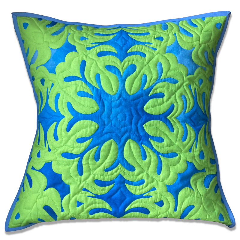 こういうのどうでしょう?正当なハワイアンキルトからすれば、いろいろコメントが届きそうですが、これを拝見し、実際縫ってみて、何か考えられるのではないかとも思ったのです。