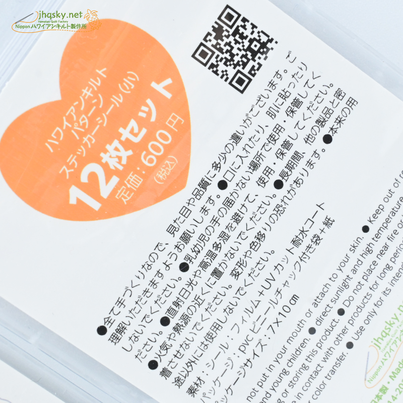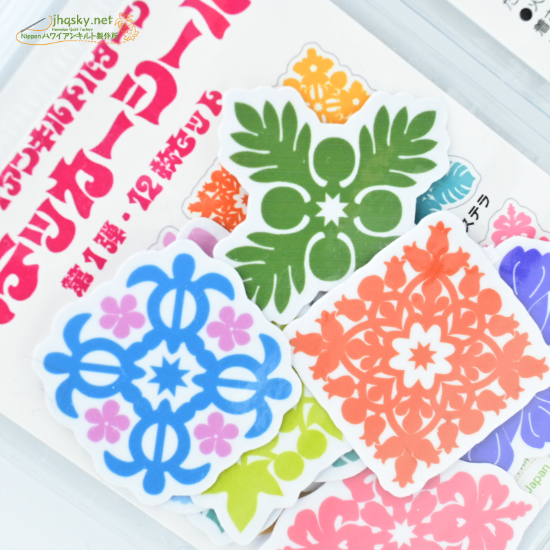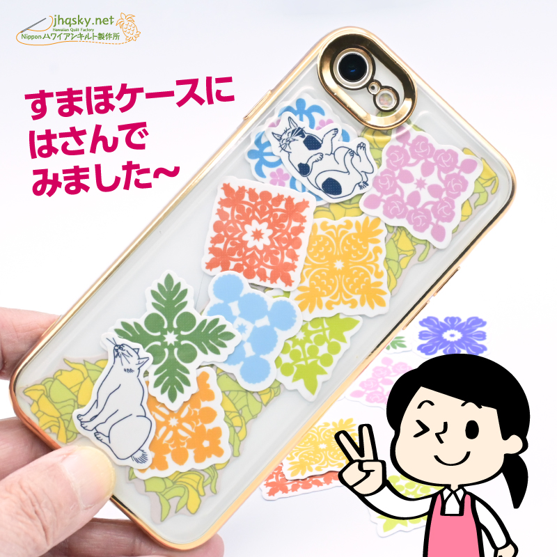 ステッカーもシールもUVカット・耐水なので、屋外でも使えます。スマホのデコレーションやタンブラー、ボトルなどに貼ってお楽しみください。価格はシールが12枚セットで600円(税込・何度も言います)日本ハワイアンキルト製作所サイトのみで売ってます。多くの方にご利用いただけると嬉しいです。ぜひともよろしくお願いします。